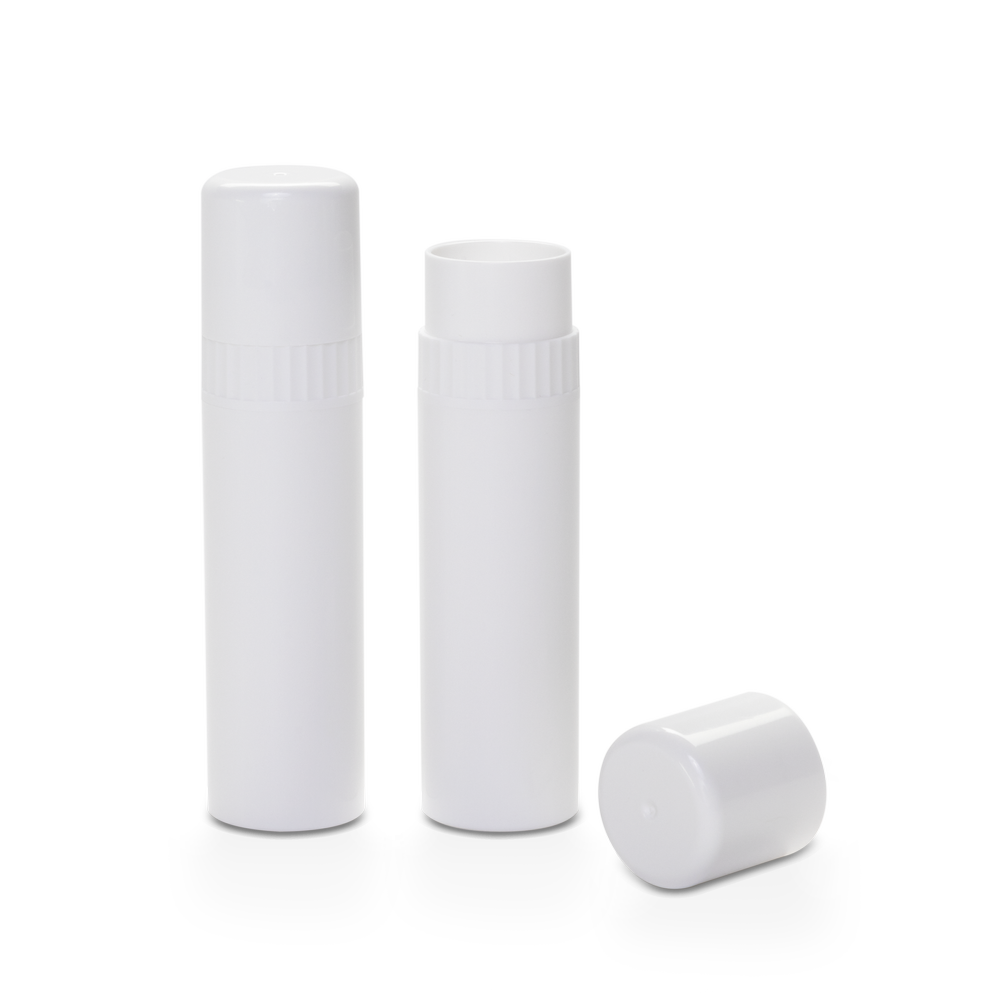 0.15 oz Natural Lip Tube & Cap - Oval - Rustic Escentuals Tubes for lip balm, body balm, body butters, and more! Twist-up turning wheel mechanism (propel/repel) base allows for your product to be cleanly and evenly dispensed. Matching oval cap. Capacity is .15 oz. (4.25g), 2.65 in height, made of polypropylene/HDPE. Maximum filling temperature is approx. 120° F. Filling with a solution too warm may warp the plastic and/or damage the mechanisms.